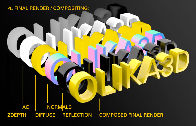 Now that the object is textured, illuminated and the camera position is set up, the scene is ready to be rendered. All effects are being translated from polygons into an actual pixel image. In this step factors like size, quality and/or image sequences are defined. Compositing is the finishing step to bring out all the brilliance the renders have to offer.